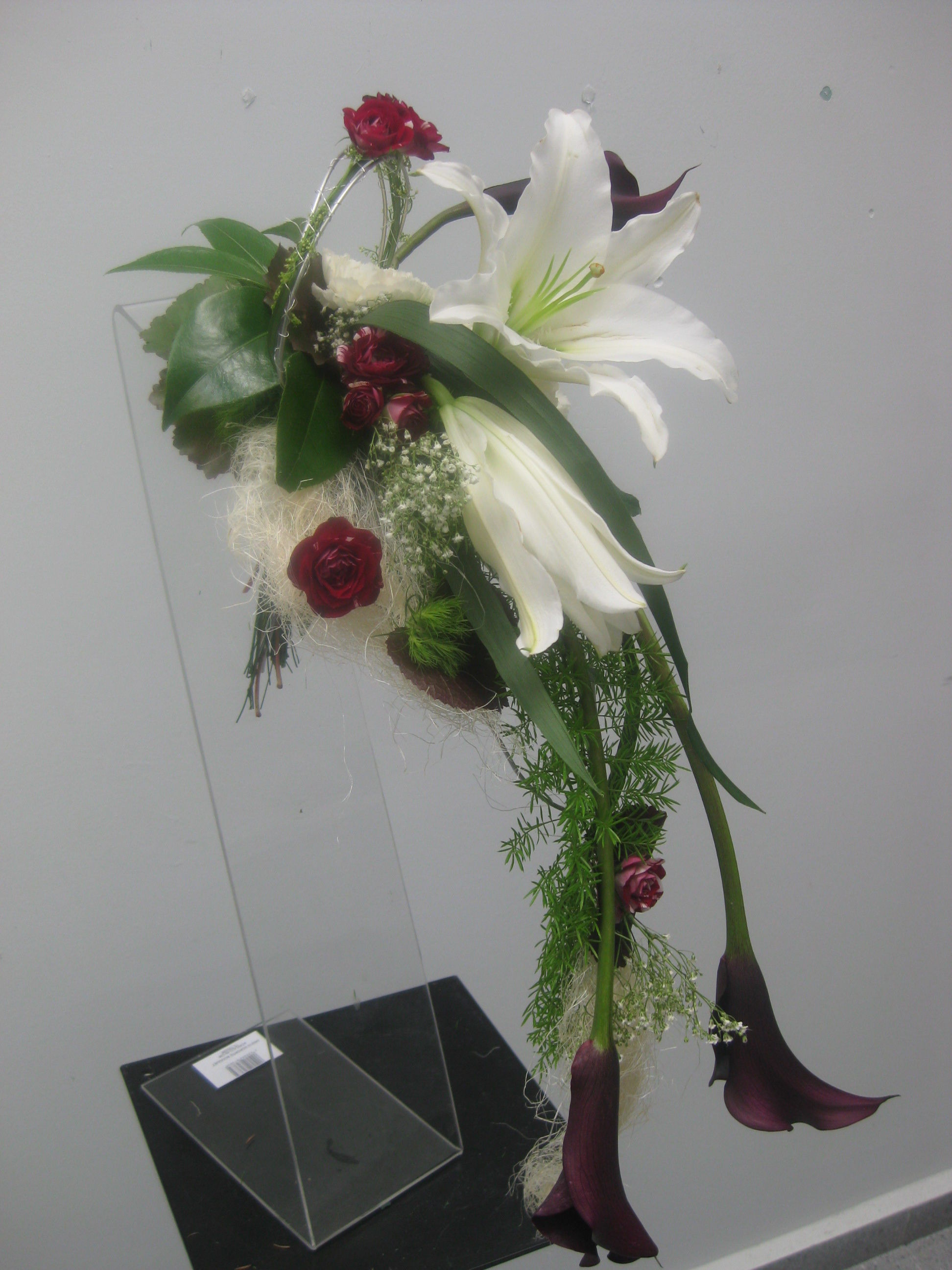 Original ramo de novia con estructura de oriental blanco y rosa granate